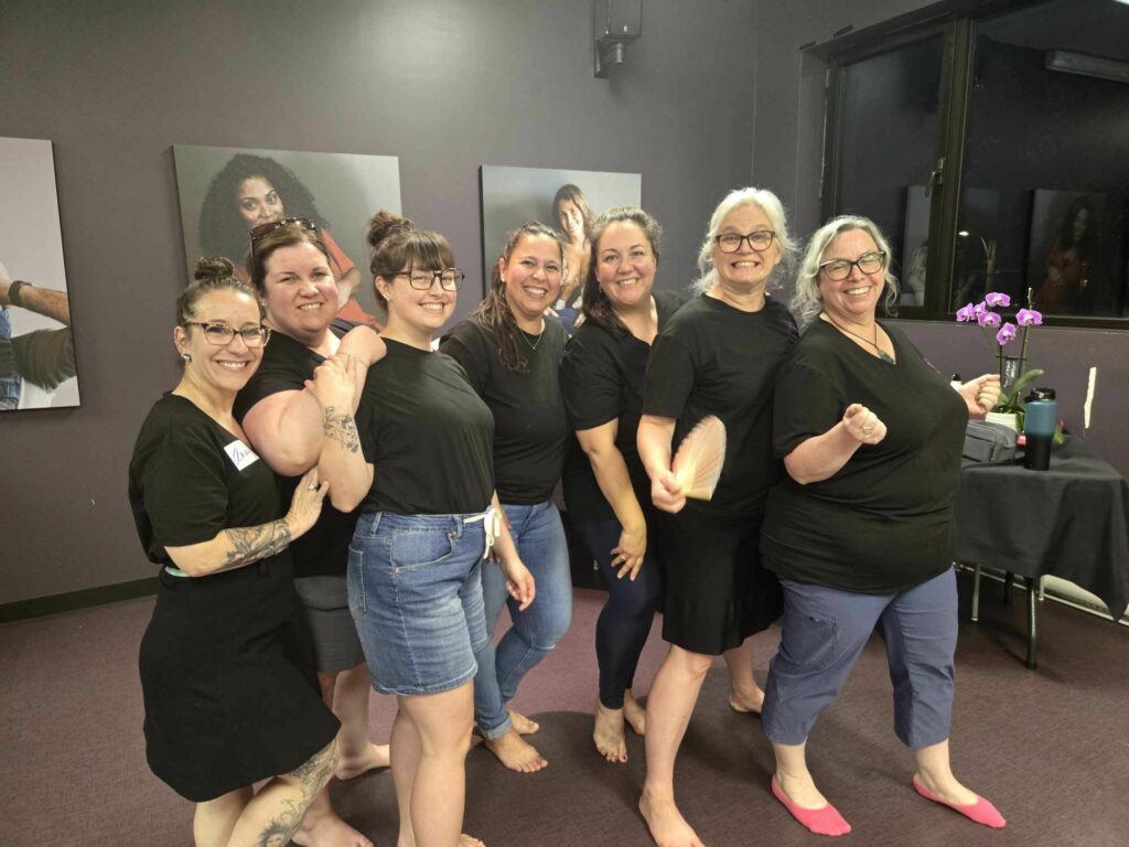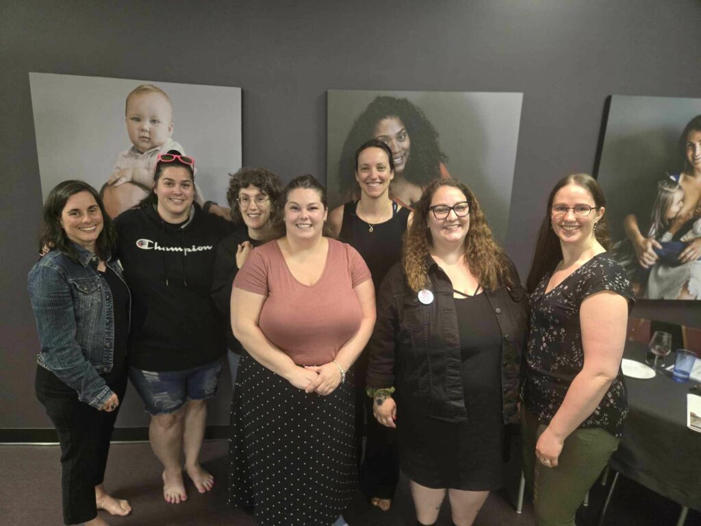 Annie Massicotte, adjointe administrative; Maude Fortin, coordonnatrice des bénévoles et du volet allaitement et consultante en lactation IBCLC, Heidi Polverari, intervenante périnatale, Gabriela Diaz, intervenante périnatale, Tara Aumont, intervenante périnatale , Kim Couture, directrice et Hélène Arsenault, coordonnatrice des services.